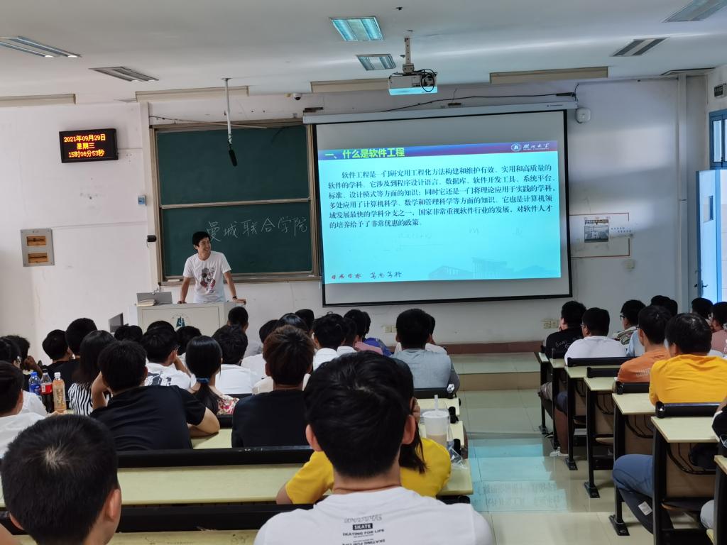 永利yl23455于9月29日15:00在教四楼开展了新生专业思想教育。材料科学与工程专业负责人夏晓红、电子信息工程专业负责人李璋、软件工程专业负责人曾张帆分别对各自专业的员工进行专业指导,联合公司2021级全体新生参加了此次活动。