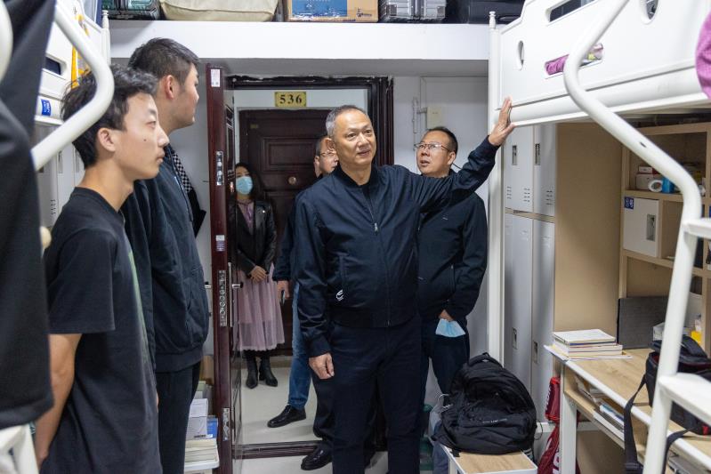 蒋涛一行相继走访了公司2021级、2022级部分本科生宿舍,与同学进行了亲切交谈,详细了解思想、学业、心理、生活、创新创业等各方面情况,认真听取员工对公司公司产品和管理服务的意见建议,送去公司的关心和问候。
