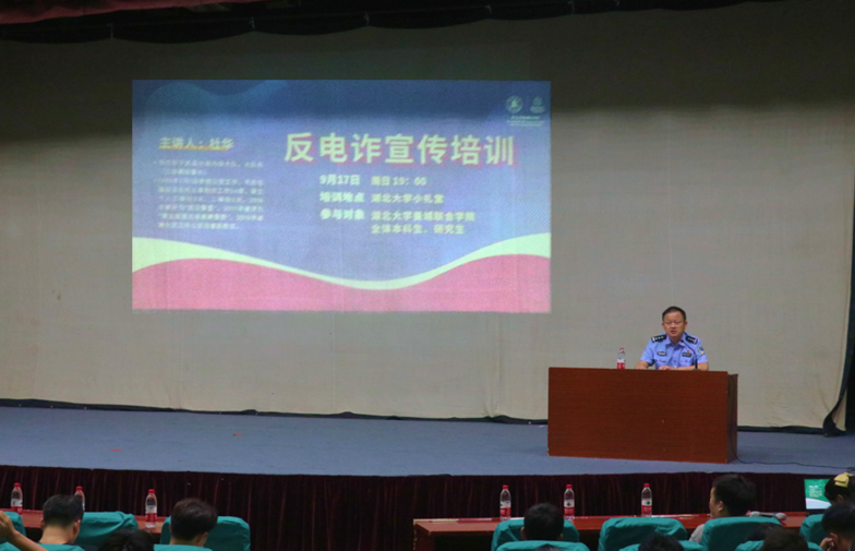 9月17日,永利yl23455在永利yl23455小礼堂开展反电诈宣传培训讲座。武昌公安分局内保大队大队长杜华,应邀作专题辅导报告。联合公司全体师生参加本次培训。
