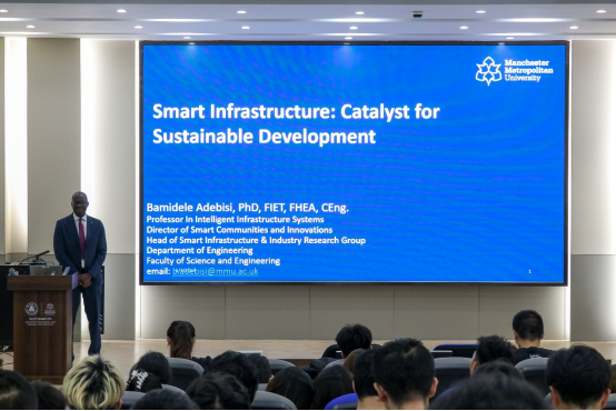 Bamidele教授为联合公司师生作了题为“Smart Infrastructure: Catalyst for Sustainable Development”(智能基础设施:可持续发展的催化剂)的专题报告。他介绍了智能社区领域的前沿概念、研究热点及科研成果,鼓励员工作为未来工程师,必须要具有持续改变的能力。