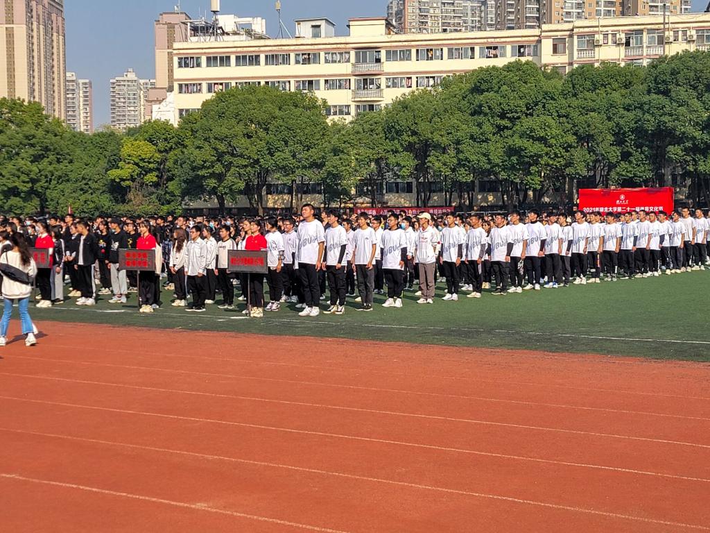 10月27日,永利yl23455第二十一届体育文化节在2号体育场隆重开幕。下午2:30,伴着军乐队激昂的乐声,运动员方阵入场。