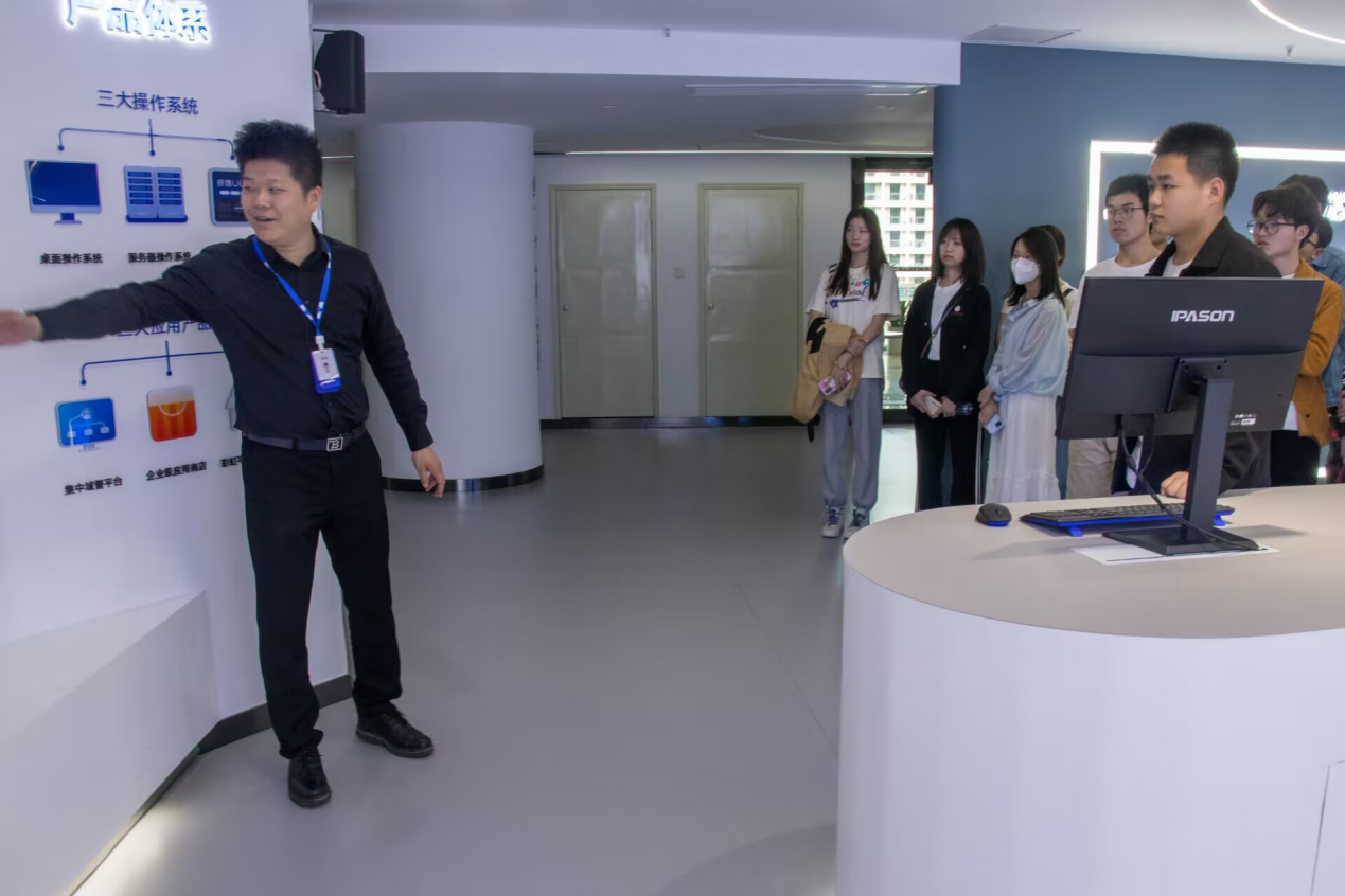 社团成员赵帅表示:“参观过程中,我了解到公司的企业文化和价值观,让我深刻认识到中国要想做好自己的操作系统,需要的正是一批这样敢做敢拼的人。不仅如此,信创公司展示了他们的科技创新和研究成果,更加深入了解了未来的科技趋势和行业发展方向。”