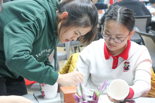 活动还吸引了公司授课教师的积极参与,亲子用画笔共同创作、描绘陶瓷杯。专任教师李玢洁在活动后谈到:“联合公司提供给我们一个很好的陪伴孩子的机会,孩子在活动中能提高自己的动手能力和艺术审美,在培养油画兰的过程中,我和孩子都很治愈,倍感温馨愉悦。”